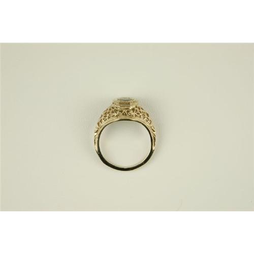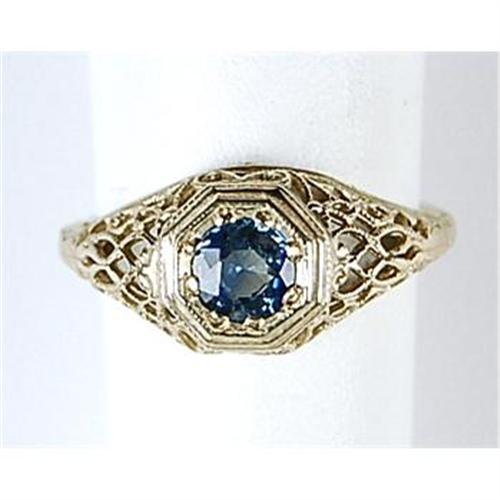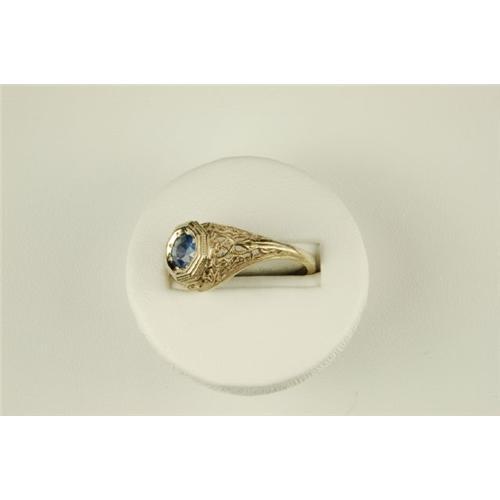 This Antique Sapphire Engagement ring features the most beautiful filigree work. It is a 14k White Gold Filigree Sapphire Engagement ring featuring a Genuine Blue Sapphire = .75 CARATS! The Sapphire is surrounded by exquisite filigree work. The ring is a size 6 1/2 and I can easily resize it for you. It is in Mint condition.