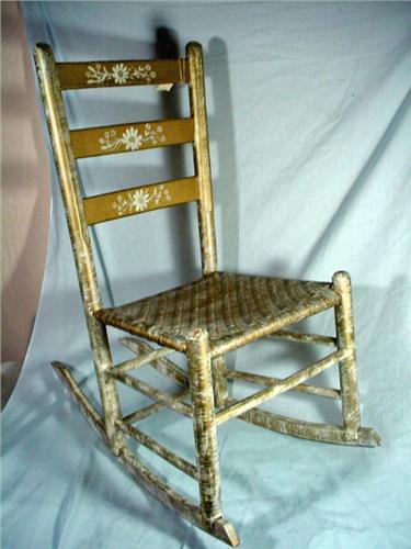 ANTIQUE WICKER AND WOODEN ROCKER 33" X 26".
