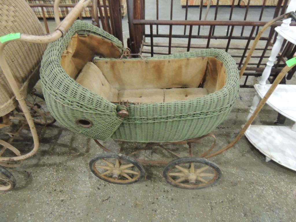 VINTAGE ANTIQUE BABY CARRIAGE, DECORATIVE CARRIAGE, HOME DECOR, BABY ROOM DECOR, STORAGE, FLOWER PLANTER, UNIQUE, DOLL CARRIAGE, ELEGANT, GOOD CONDITION, AS SHOWN SEE PHOTO FOR MORE DETAILS.