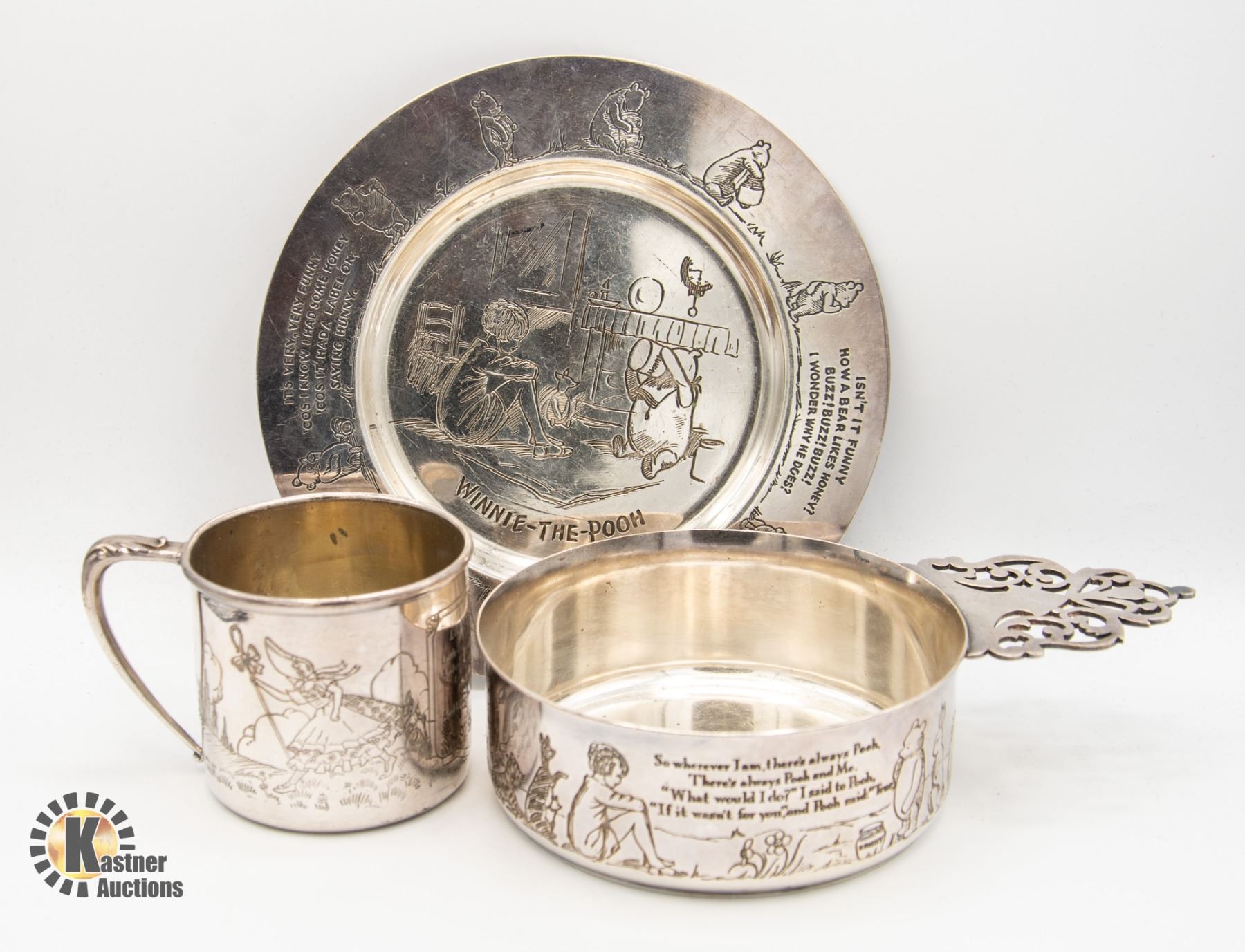 LITTLE BO PEEP CUP, WINNIE THE POO PLATE AND PORRIDGE BOWL, SILVER PLATED **ALL ITEMS MUST BE REMOVED BY 5PM SATURDAY, OCTOBER 5TH 2024. ALL REMAINING ITEMS WILL BE SUBJECT TO A $6.00 PER DAY STORAGE CHARGE. ANY ITEMS REMAINING AFTER MONDAY, OCTOBER 21ST 2024 WILL BE CONSIDERED FORFEITED. NO REFUNDS WILL BE ISSUED FOR FORFEITED ITEMS. TO SCHEDULE A PICK UP APPOINTMENT CLICK HERE