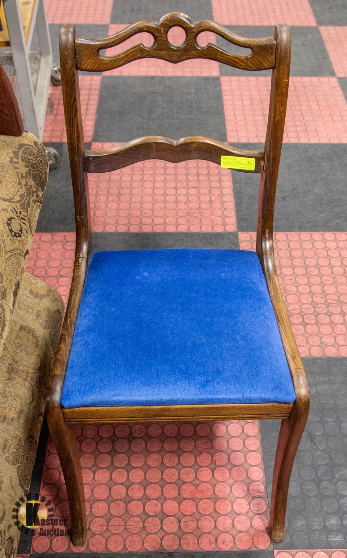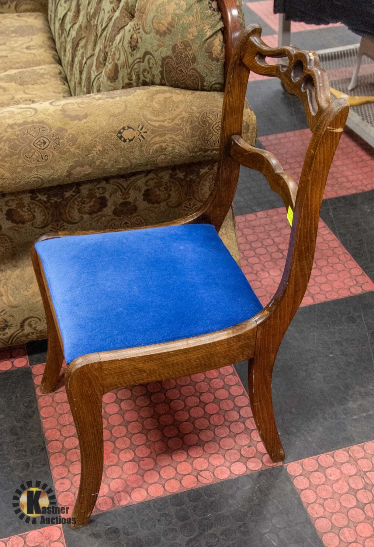 ANTIQUE WOOD CHAIR WITH BLUE VELVET PADDING