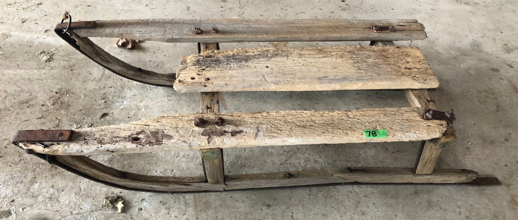 ANTIQUE WOOD CHILDS SLED WITH METAL RAILS