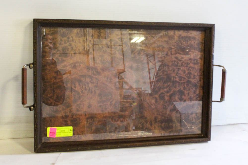 ANTIQUE WOOD HANDLED SERVING TRAY- 21" X 13"