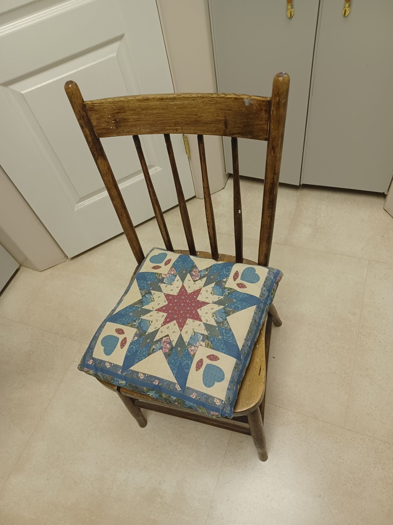 ANTIQUE WOODEN CHAIR WITH CUSHION