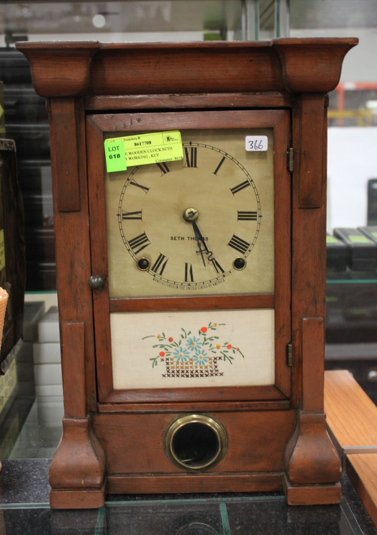 ANTIQUE WOODEN CLOCK SETH THOMAS WORKING WITH KEY