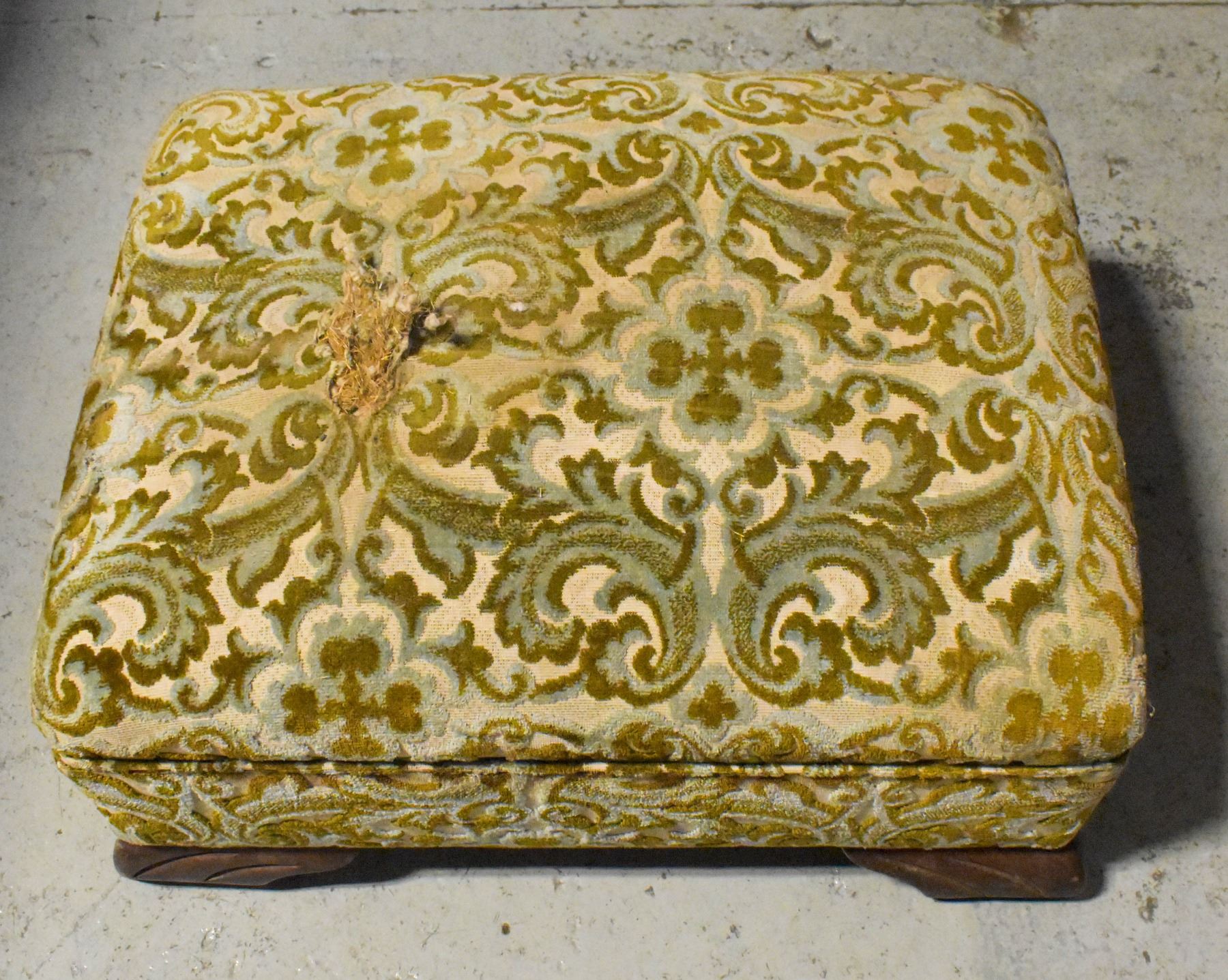 ANTIQUE WOODEN FRAME UPHOLSTERED STOOL