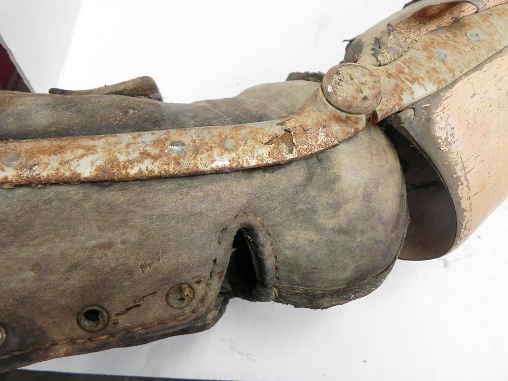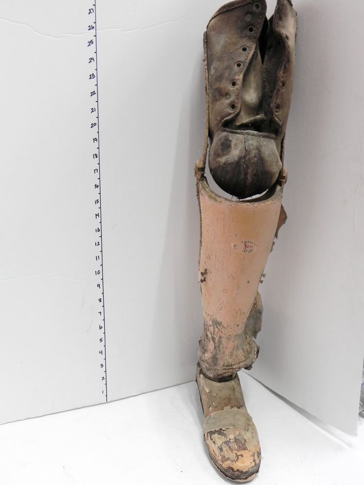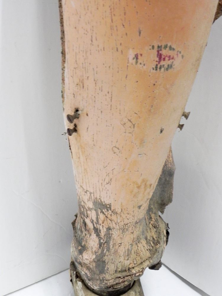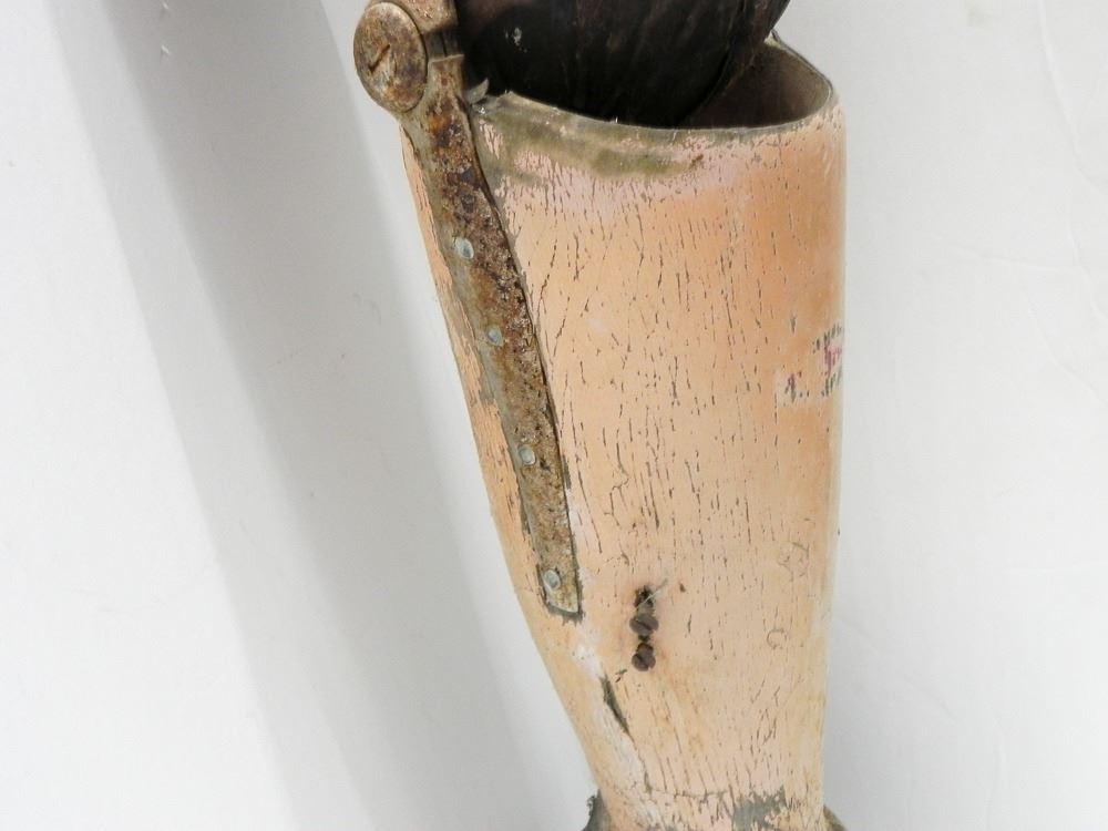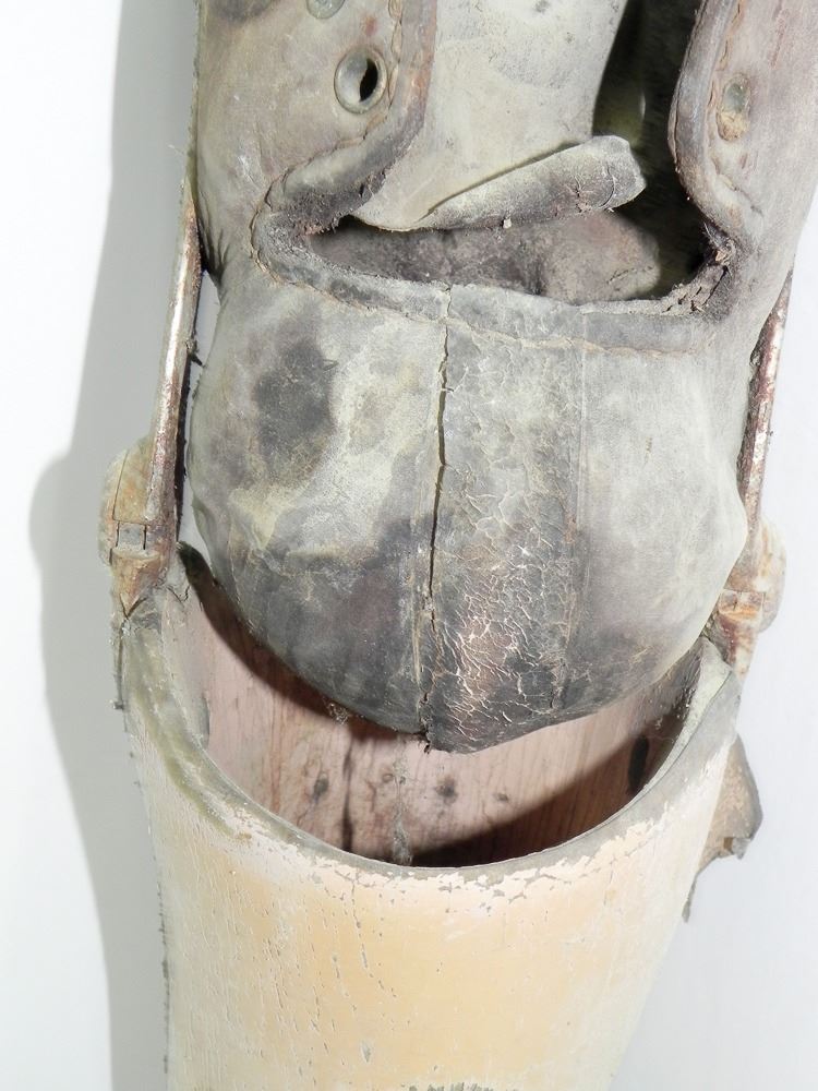 ANTIQUE WOODEN PROSTHETIC LEG 1800S. GORGEOUS ANTIQUE PROSTHETIC WOODEN LEG. VERY OLD PIECE. THE LEATHER IS VERY HARDENED AND THE METAL STRAPS ARE ALL INTACT. THE FOOT IS NOT SECURELY ATTACHED. PLEASE SEE ALL PICTURES