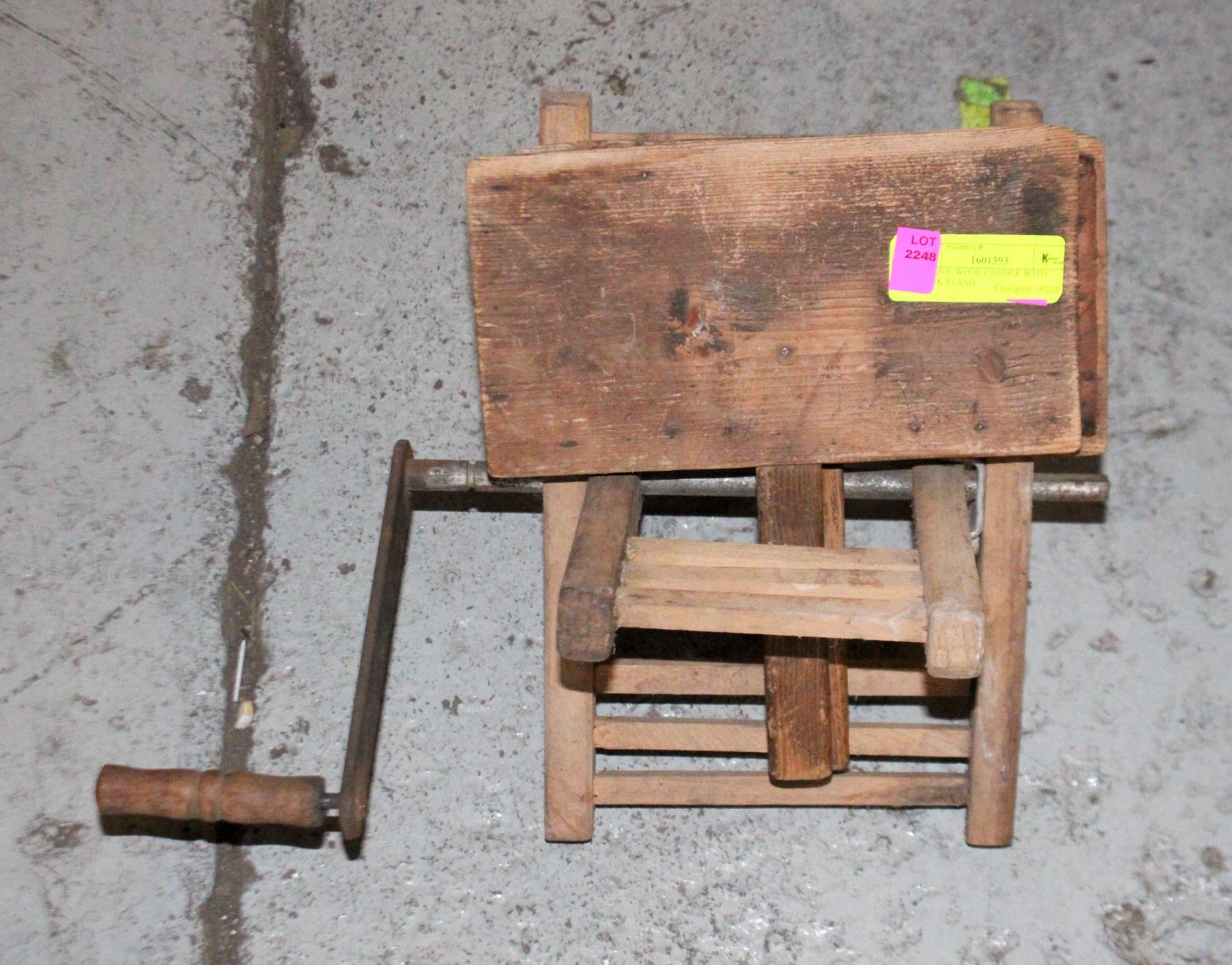 ANTIQUE WOOL CARDER WITH CRANK STAND
