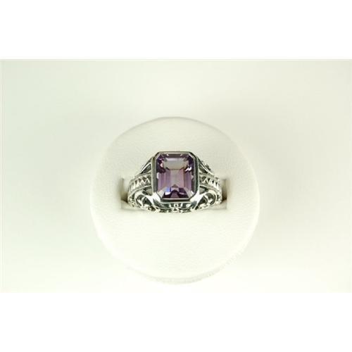 Antique Style Sterling Silver Filigree ring featuring a Genuine AMETHYST. This lovely ring is currently a size 7 and can be resized.