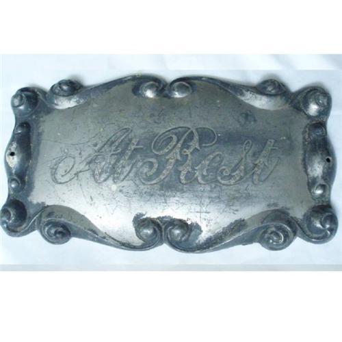 This is an antique casket or coffin grave plate with the words AT REST marked on it. This is pretty ornate and is some sort of silver metal. The length is 8" and the width is 4". What a nice old piece of history from the 1800?s.