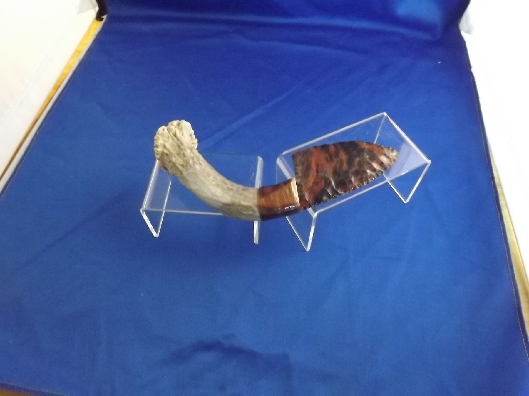 ANTLER HANDLE SINEW WRAPPED OBSIDIAN ARROWHEAD ROUGH EDGE KNIFE