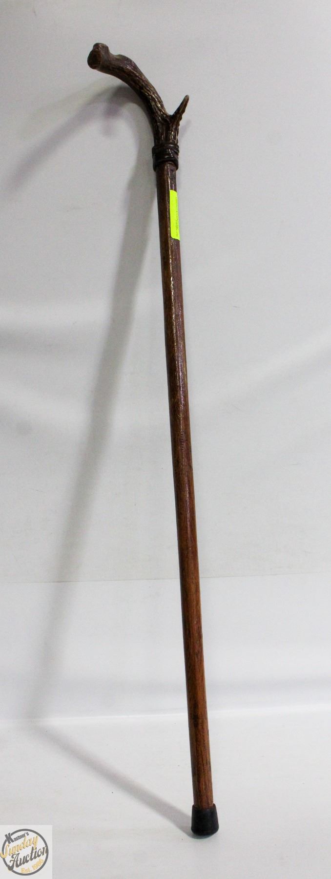 ANTLER HANDLED SCORCHED CHESTNUT WALKING CANE