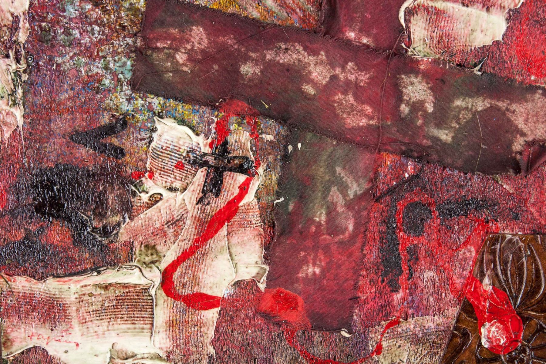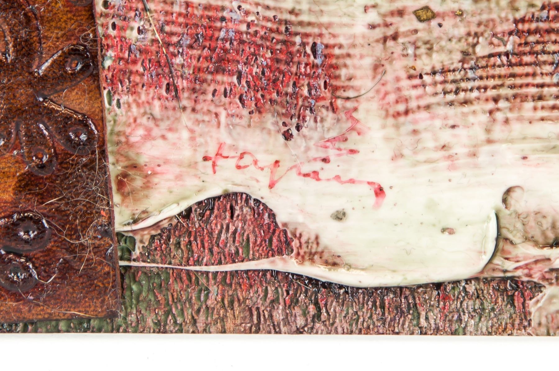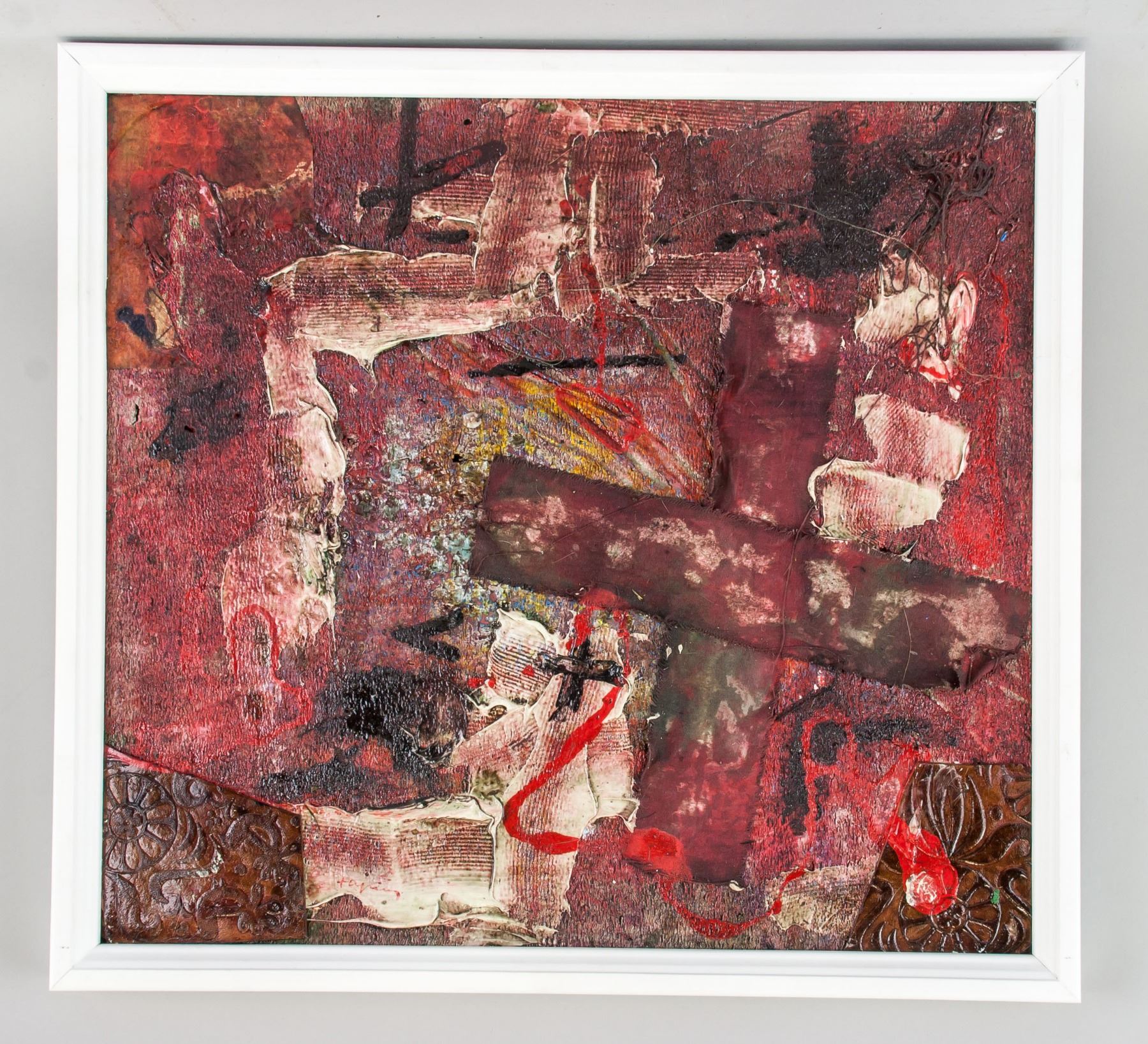 Mixed media abstract composition. Signed and attr. Antoni Tapies (Spanish, 1923-2012) on lower right corner. 14.75 x 16.25 in (37.5 x 41.3 cm). Over the course of his career in painting, printmaking, and etching, Antoni Tapies has created his own lexicon of symbols and marks to help communicate the broad range of influences in his work including, most significantly, his Catalan roots, as well as his involvement with the Parisian intellectual scene of the 1950s, meeting exponents of Art informel like Jean Fautrier and Jean Dubuffet. Tapies' abstract paintings are made with expressive blends of impasto, gestural brush strokes, often backwards hand-written script, and common materials such as soil and marble dust. PROVENANCE: Southern Ontario estate