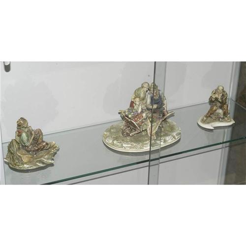 ANTONIO BORSATO PORCELAIN GROUPS (3), the largest 11" wide PACKING AND SHIPPING must be handled by 3rd party shipper. CONDITION REPORT: excellent with a few minor chips, fisherman missing finger.