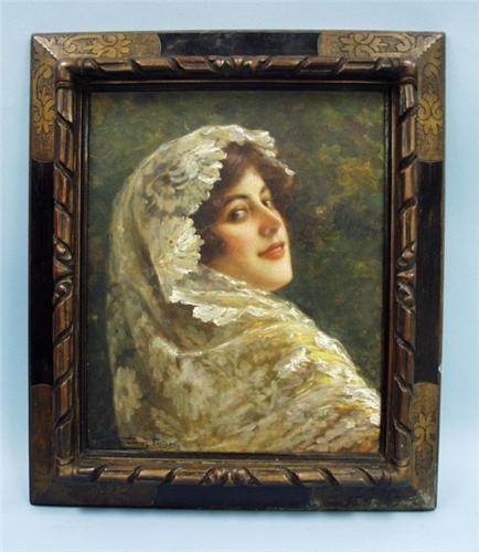 ANTONIO TORRES FUSTER (1874-1945) "Portrait of a Lady". Oil on canvas. Signed lower left. 18" x 14 1/2". In carved wood frame.