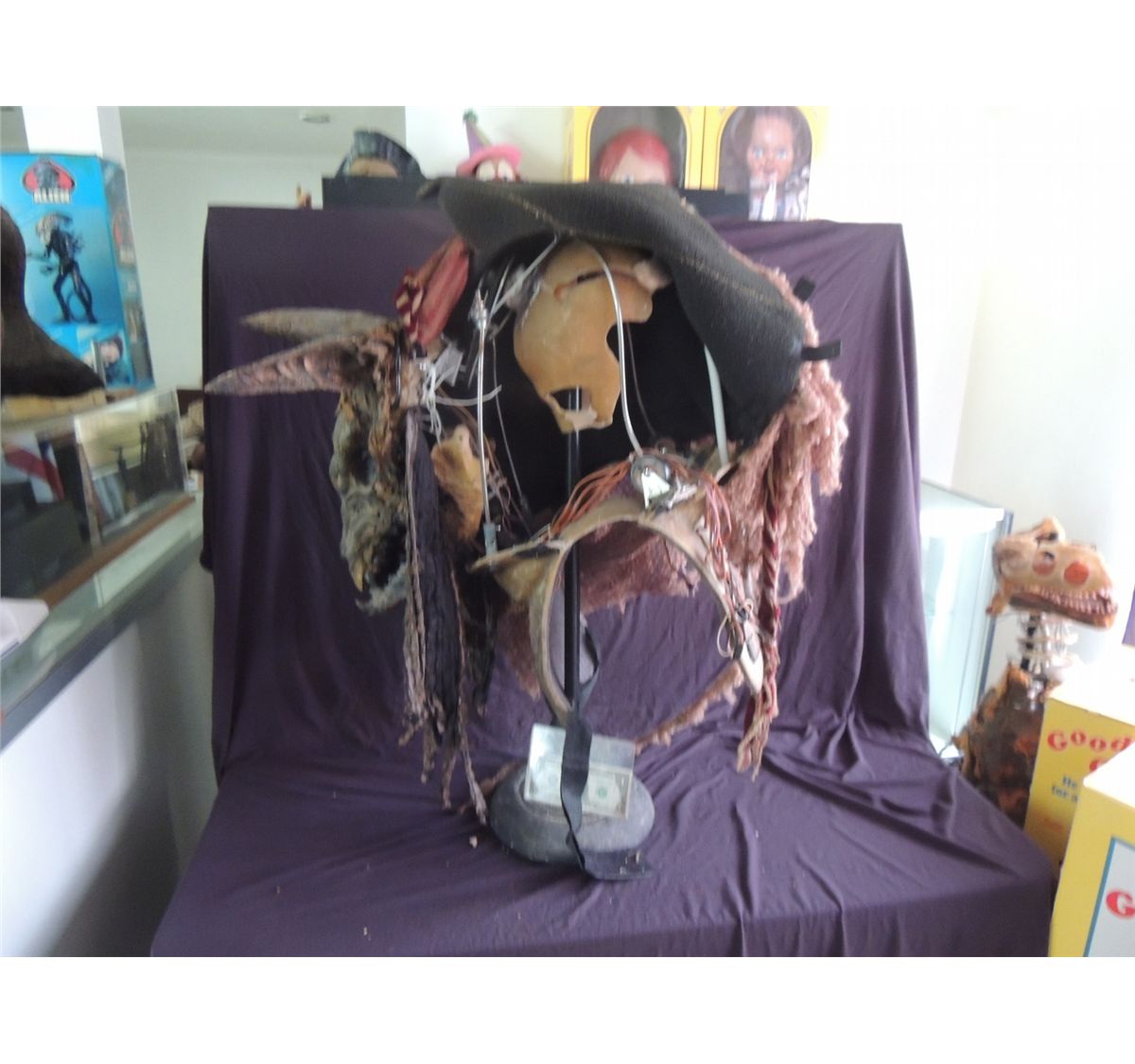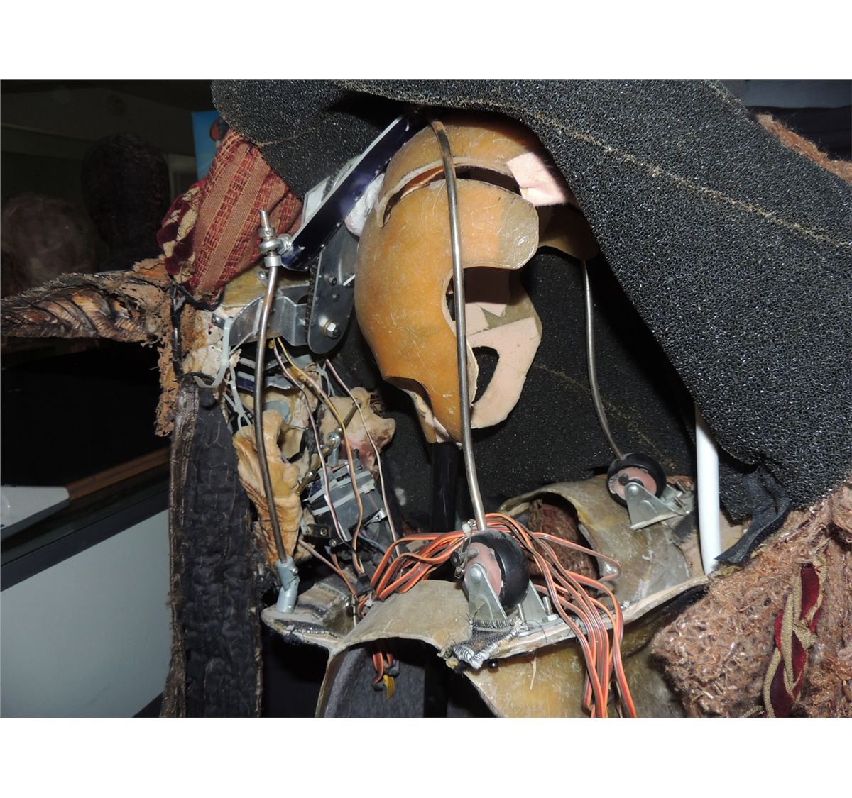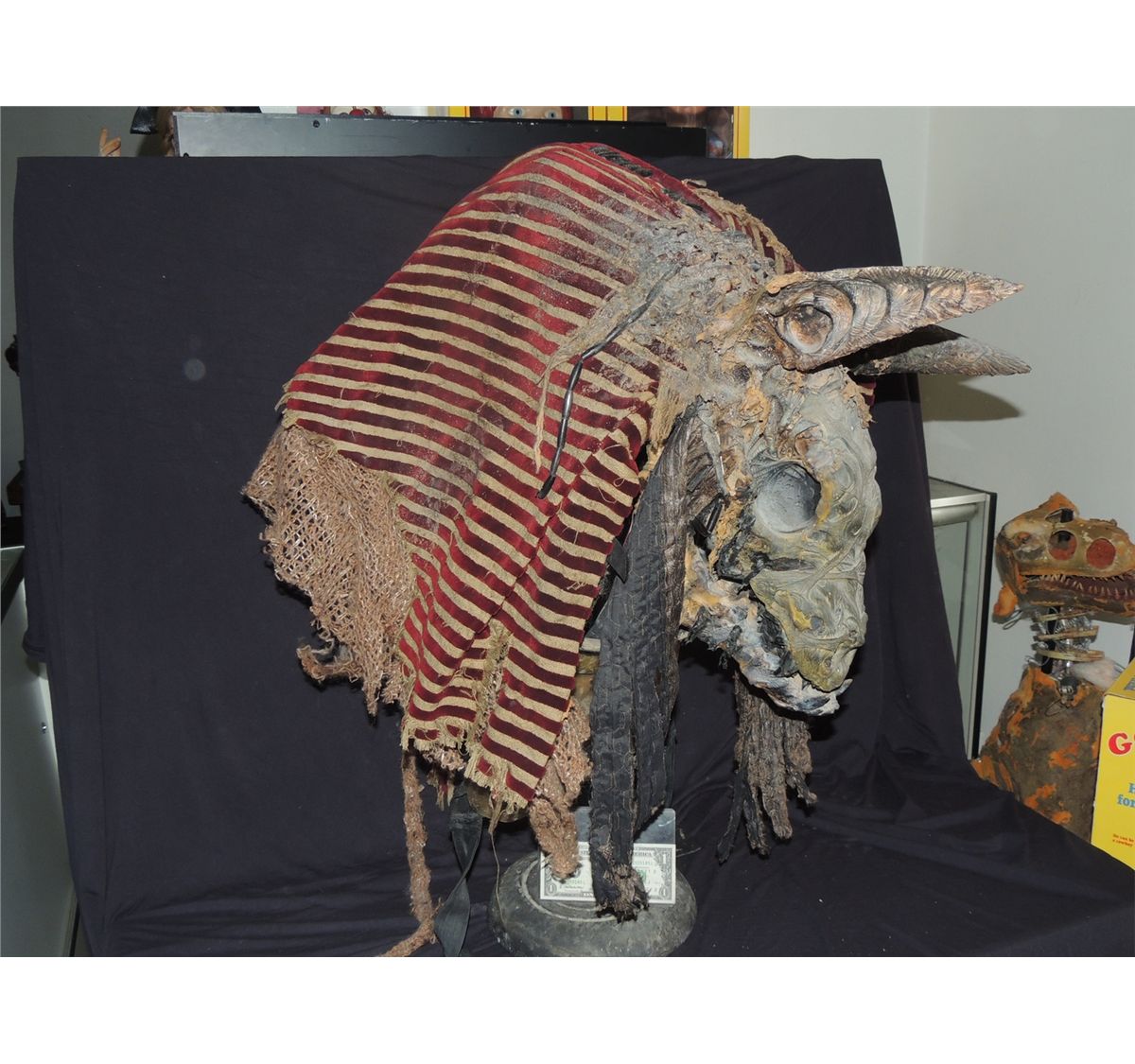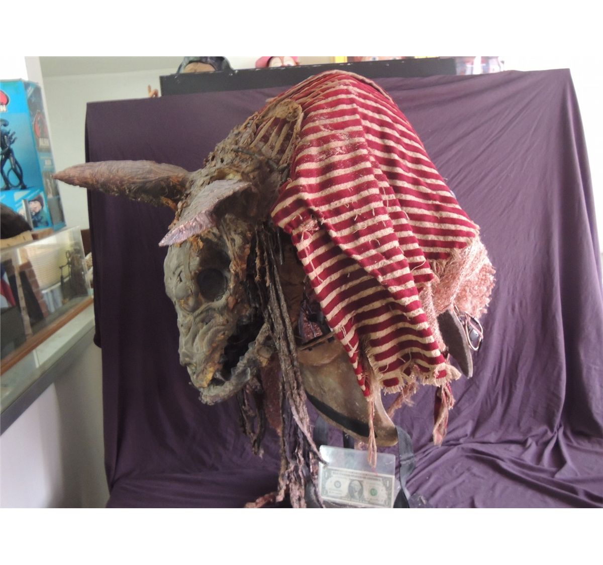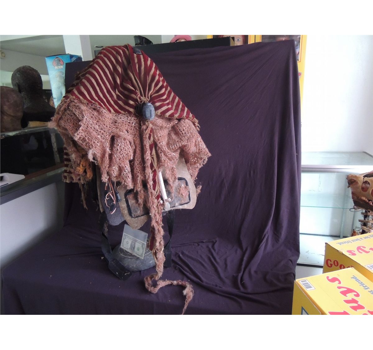 This is an absolutely incredible and wearable fully animatronic head of the Egyptian god ANUBIS. Screen Used, but I forget what film he said. Still has the head dress and all of the servos & mechanisms intact. The other piece of wardrobe is the skirt. Body suit seen in screen shot is not included here.