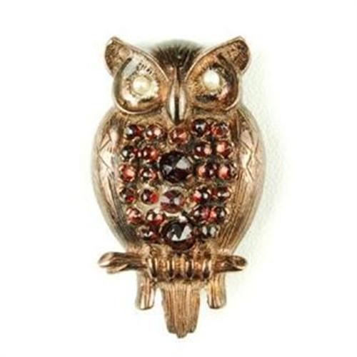 This Antique Style pin is an Authentic and Accurate copy of an OWL PIN from the 1900's but this one is in MINT condition! This Owl Pin is VERMEIL (GOLD on Sterling) and it features 25 magnificent BOHEMIAN GARNETS on the body and 2 Genuine Pearls for the eyes. The Owl measures 40mm sitting on his (or her) perch. If you like to wear pins, this Vintage Owl Pin would be a great addition to your collection.