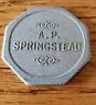 Springstead tokens are rare. Alan P. (Colonel) Springstead built this post in 1930 and ownership stayed in his family until it closed in 1985. He was a respected trader and well-liked by his Navajo customers. The store was twenty-five miles northwest of Gallup among the red rock bluffs. During this time, there were nearly 70 trading posts within 50 miles of Gallup. Those were significant miles because travel was by horseback or wagon. Also, there was no reason to travel to Gallup because most business would have been conducted with cash. The Navajo people had limited cash. Their micro-economy centered around their trading post. Most business was done by trading. The area stores were sources for handmade silver beads. Most craftsman could not make beads, especially in Zuni. Necklaces were purchased by traders who then strung them with handmade beads. The majority of beads came from this area northwest of Gallup. Mrs. Springstead was a Gallup teacher for years. Their son Alan was my teacher in high school in the ’50s, and he was active in the community for years. The family had a Gallup residence in my neighborhood. The store handled Gallup throw rugs, silver beads, and piñons. There is nothing left of the store.