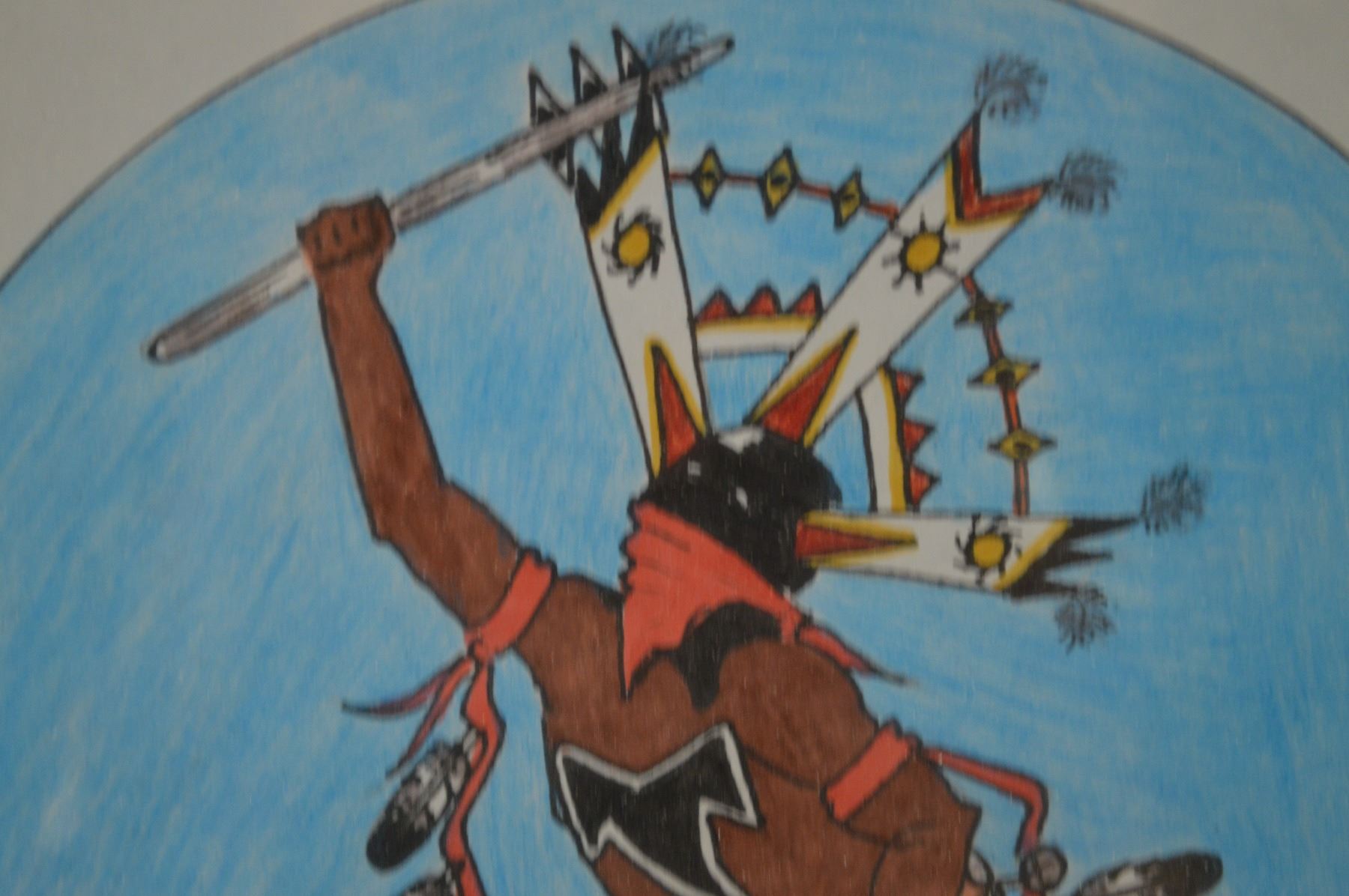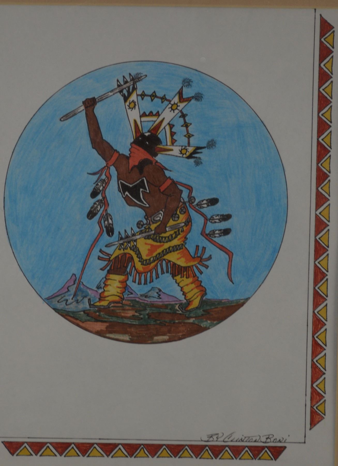 Contemporary. Hand painted depicting Gan Dancer. Signed Clinton Boni.