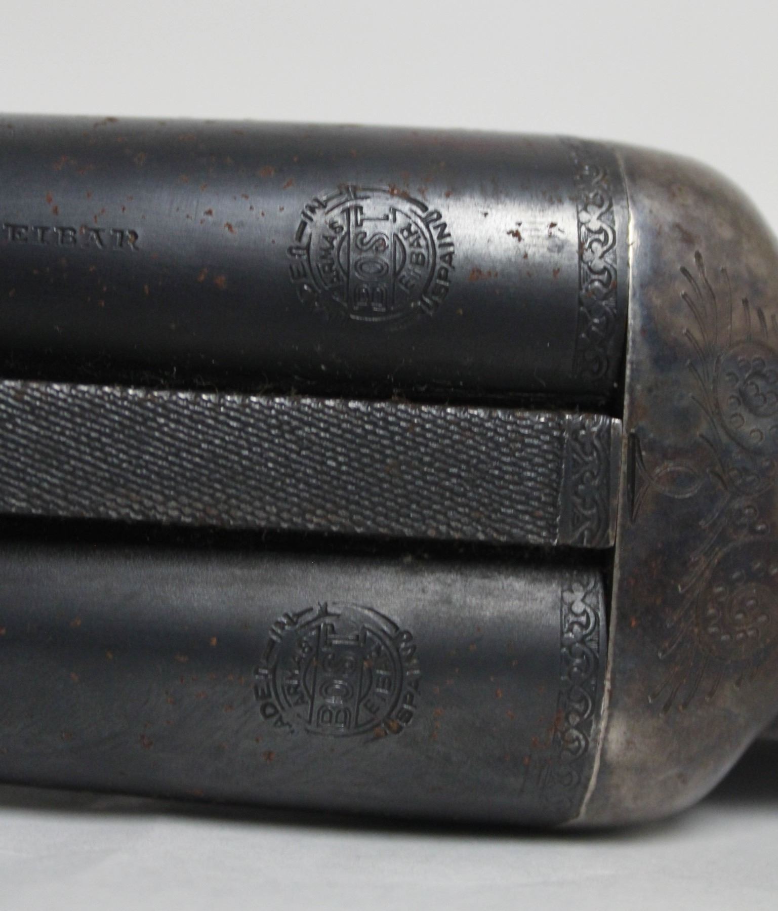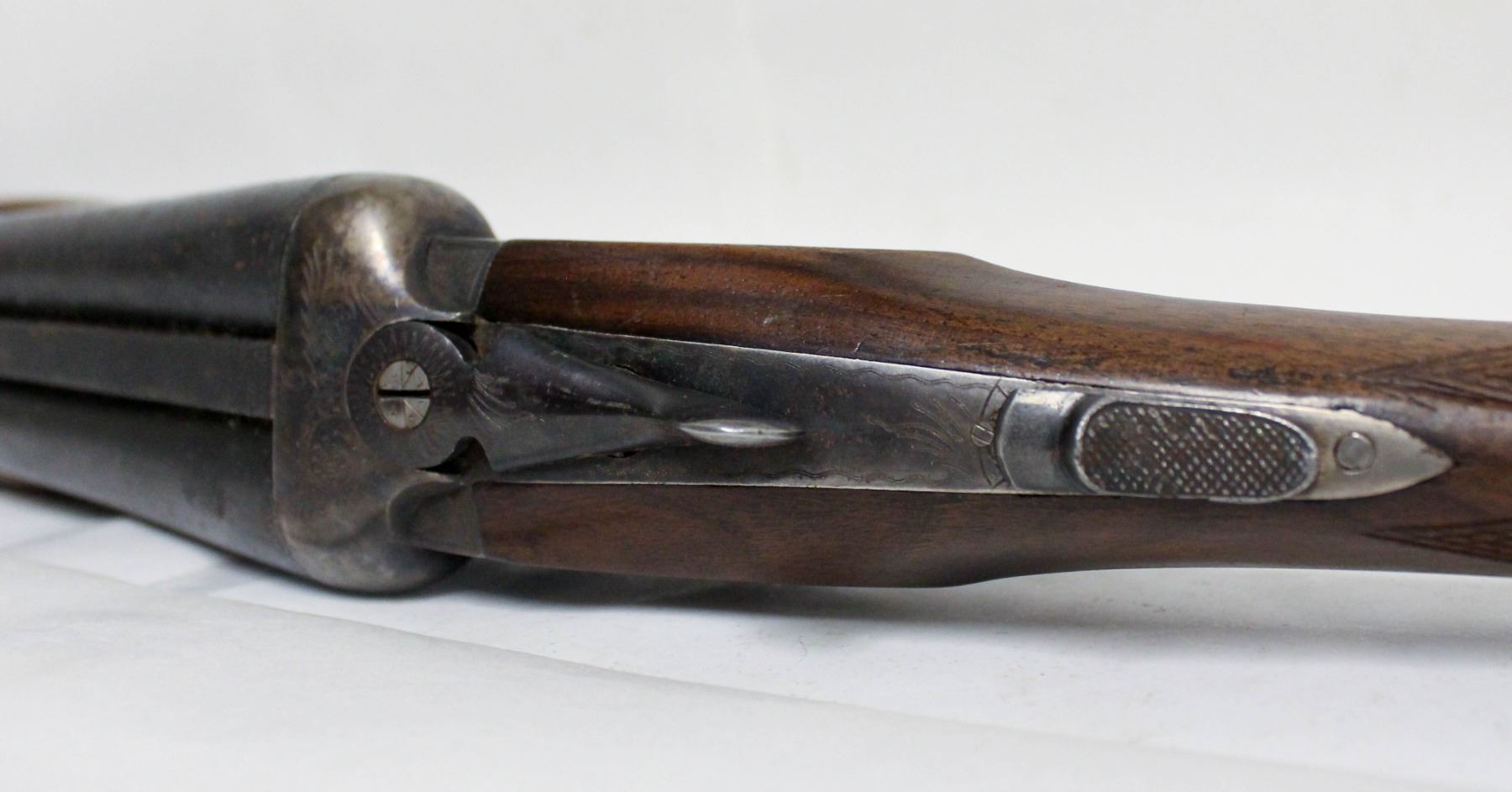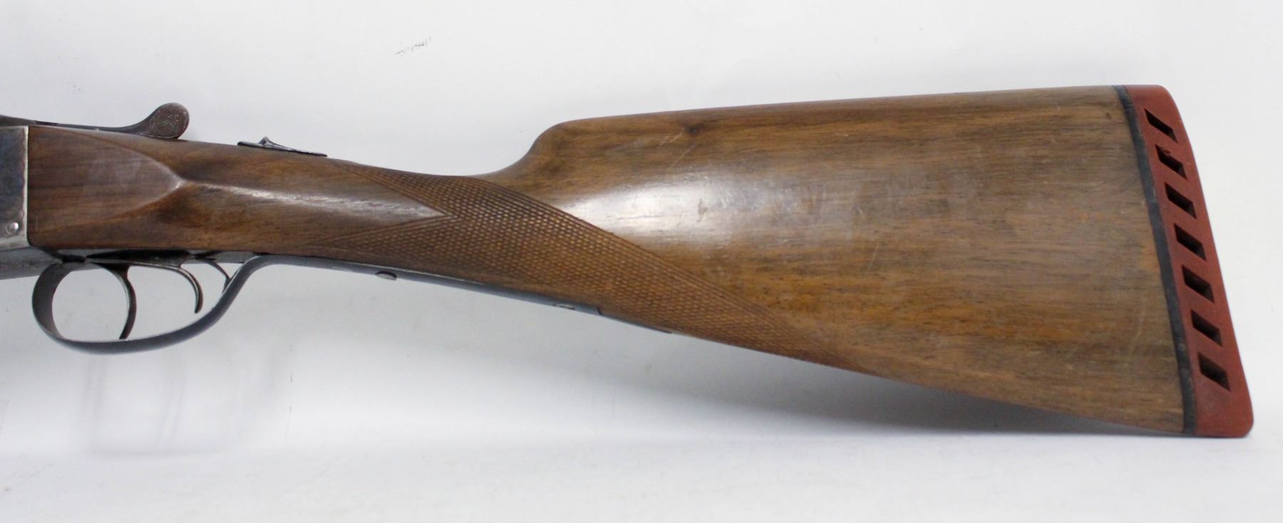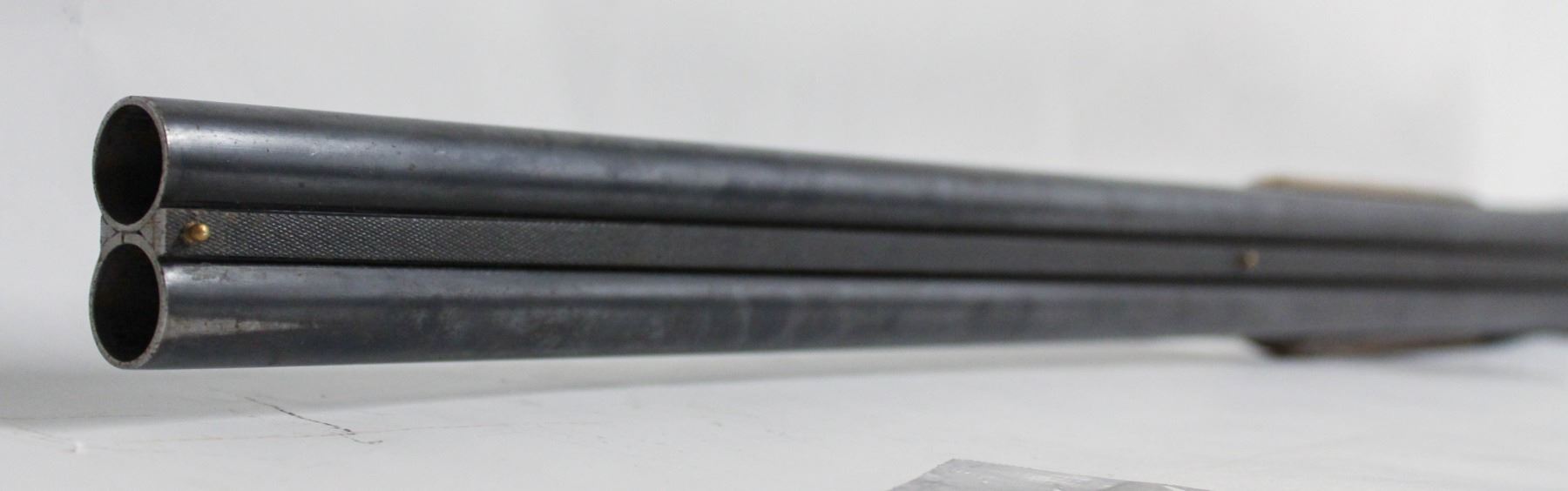 W/ DOUBLE TRIGGERS, HAS SURFACE PITTING AND RUST IN VARIOUS LOCATIONS ON THE BARRELS, BLUEING IS IN VERY GOOD CONDITION WHERE THERE IS NO RUST, BEAD SIGHTS ARE INTACT, VISIBLE RUST INSIDE THE LEFT HAND SIDE CHAMBER. FOREHAND STOCK APPEARS IN GOOD CONDITION, REAR STOCK APPEARS TO HAVE A REPAIR SCAR.