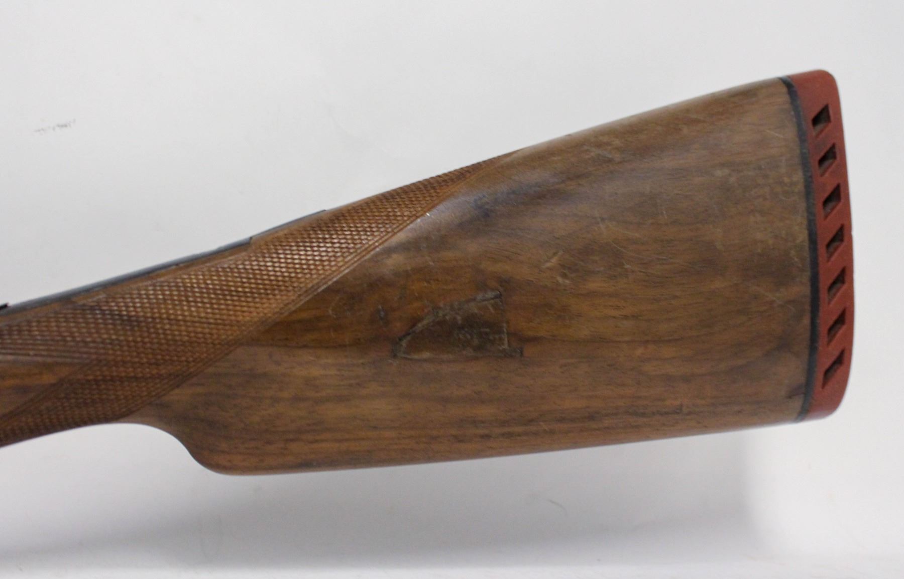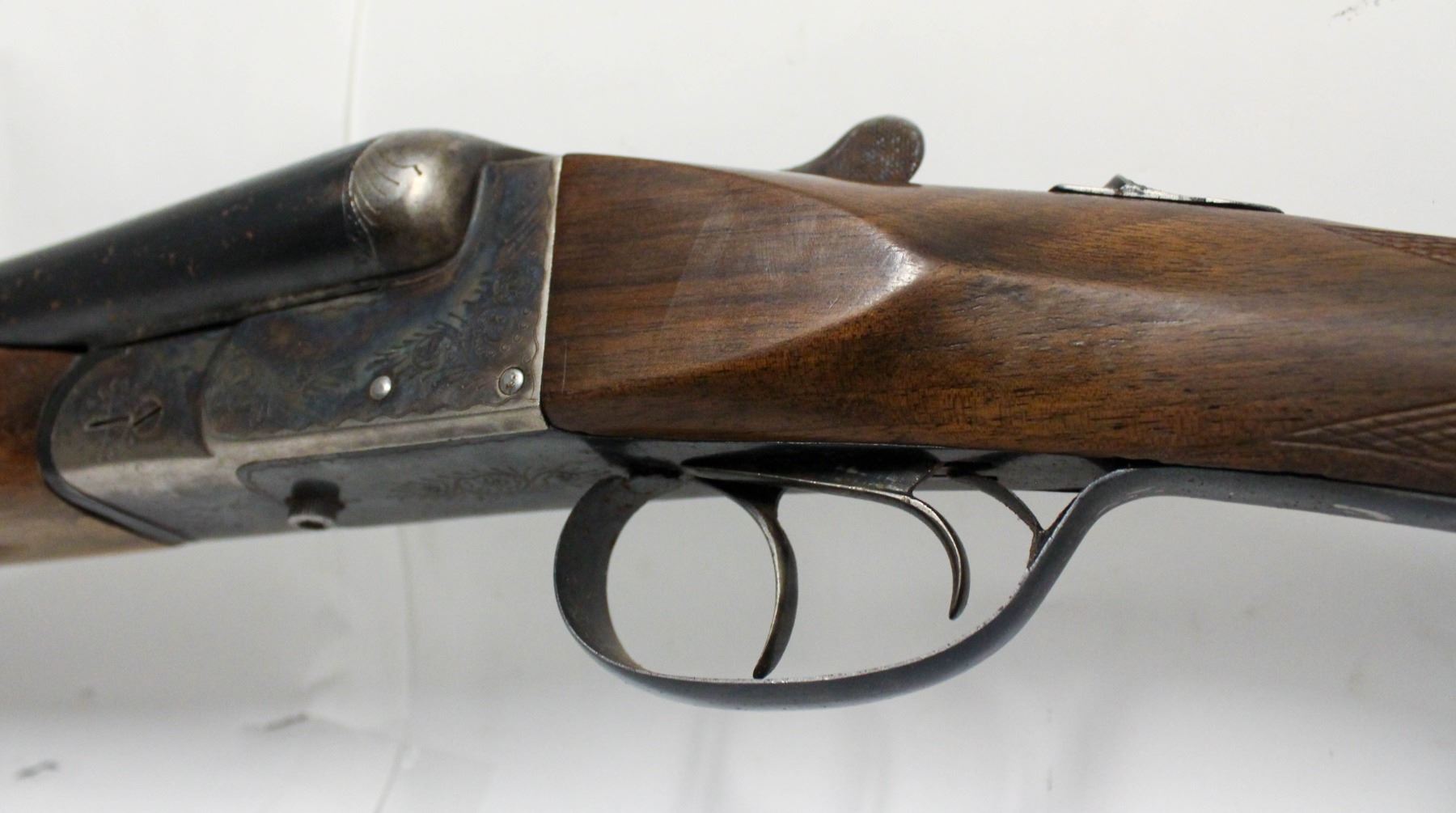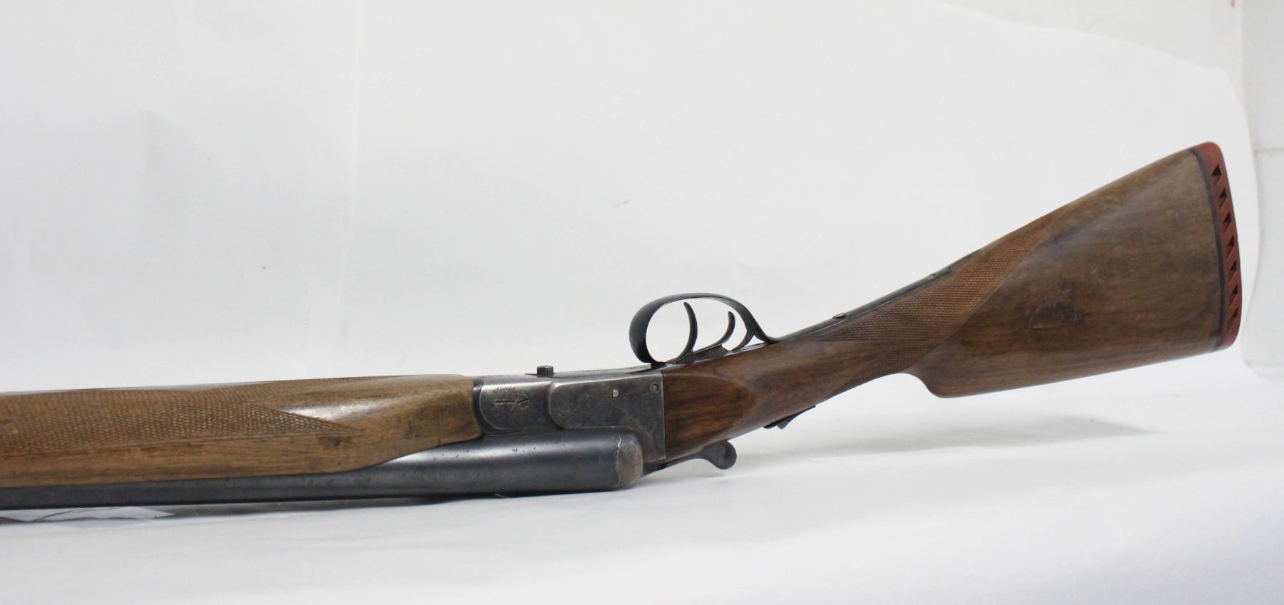 W/ DOUBLE TRIGGERS, HAS SURFACE PITTING AND RUST IN VARIOUS LOCATIONS ON THE BARRELS, BLUEING IS IN VERY GOOD CONDITION WHERE THERE IS NO RUST, BEAD SIGHTS ARE INTACT, VISIBLE RUST INSIDE THE LEFT HAND SIDE CHAMBER. FOREHAND STOCK APPEARS IN GOOD CONDITION, REAR STOCK APPEARS TO HAVE A REPAIR SCAR.