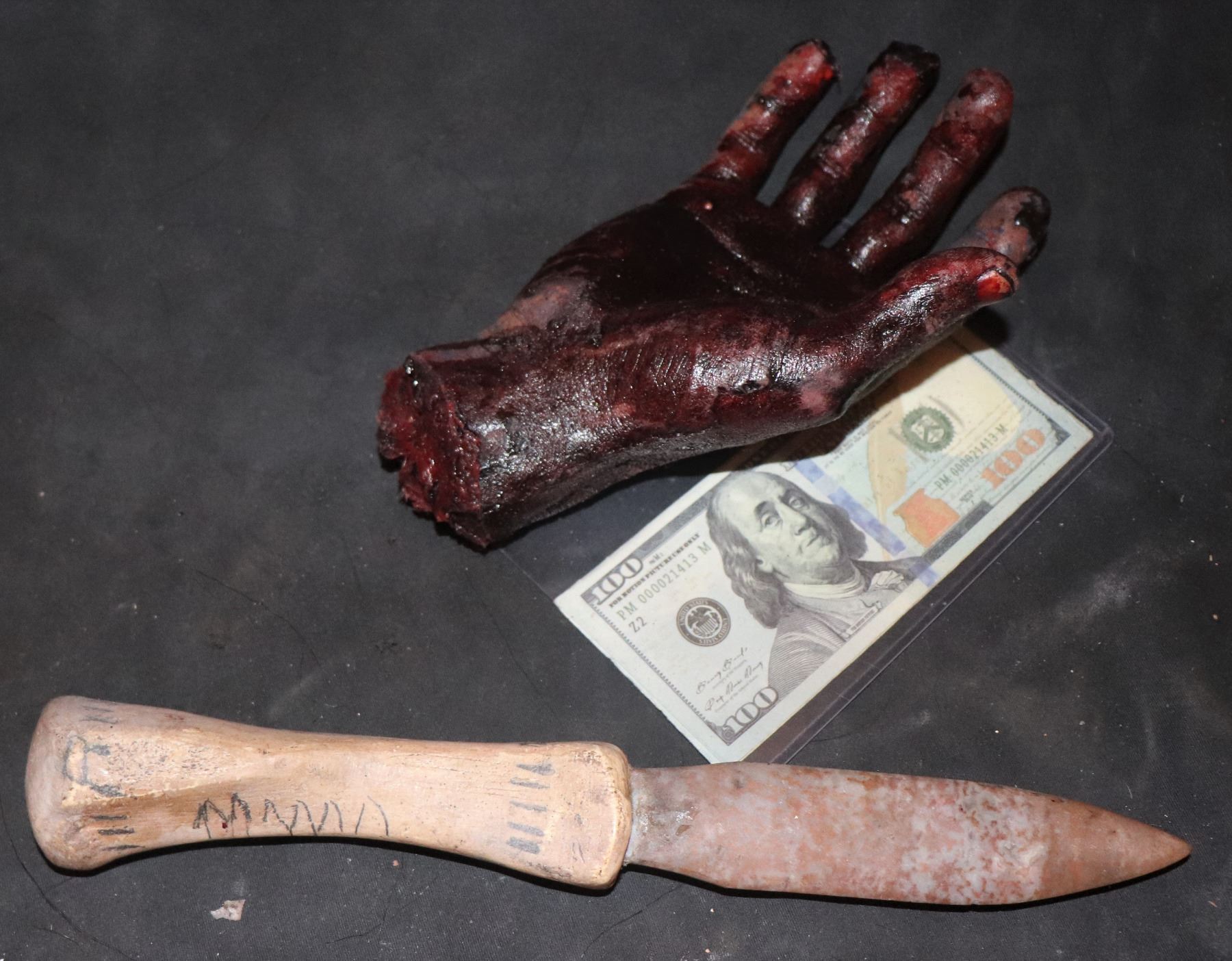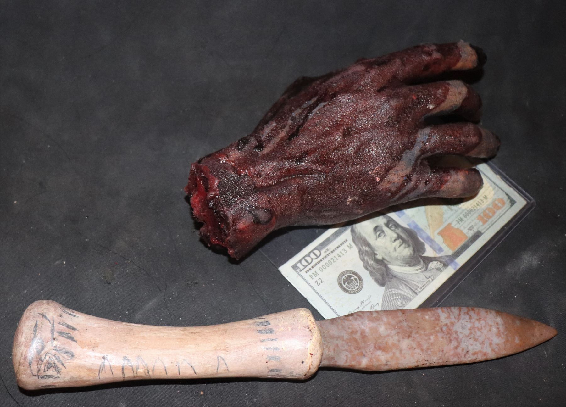 APOCALYPTO MAYAN DAGGER AND BLOODY SEVERED HAND SCREEN USED LOT!