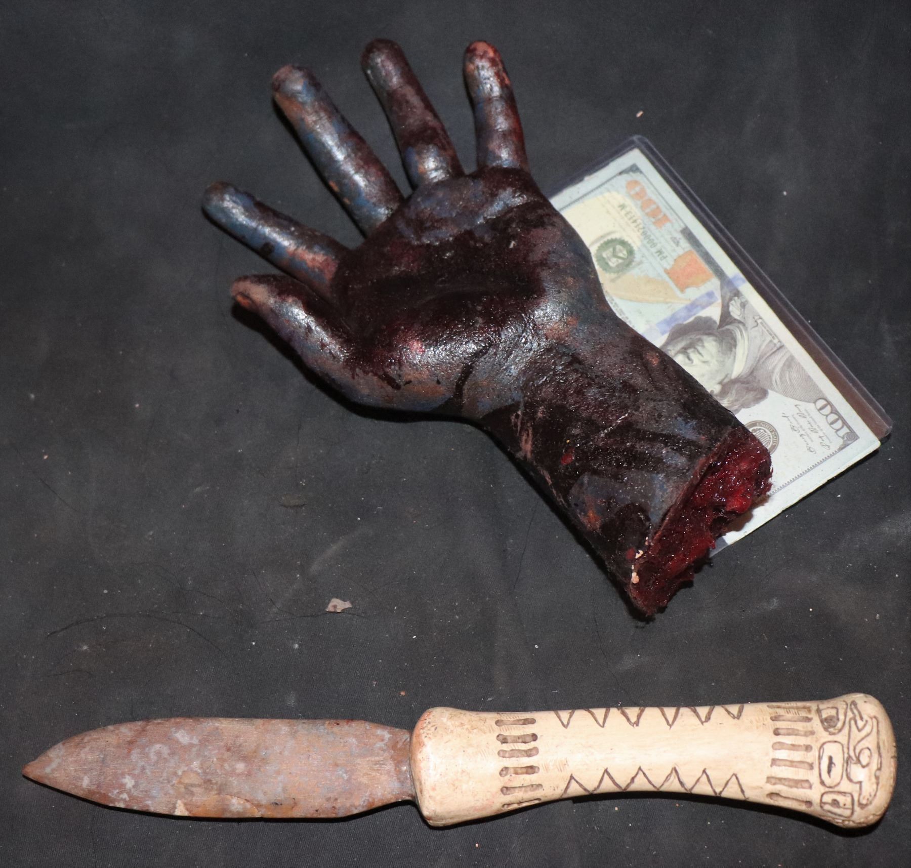 APOCALYPTO MAYAN DAGGER AND BLOODY SEVERED HAND SCREEN USED LOT!