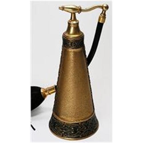 Produced circa 1900, by the Apollo Studios and sold in their New York City store, and so marked, along with the number 3035, on the bottom. This beautiful Art Nouveau - Art Deco antique brass perfume atomizer bottle features intricately designed black and red enameled designs bordering the lower part of the atomizer. The original atomizer hardware screws into a screw-in bronze capped canister that once contained perfume. The hardware is original but the bulb apparatus is new. Measuring 7 inches tall and is in excellent condition, without, other than some tarnishing and wear due to age. APOLLO marked and numbered 3035