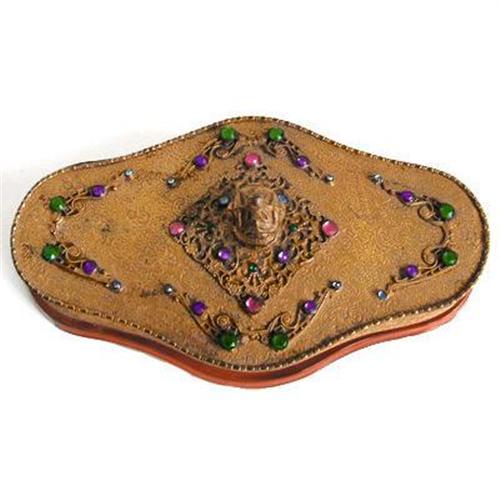 <tr><td>Title:APOLLO Glass Jeweled Brass Glass Makeup Compact</td></tr>