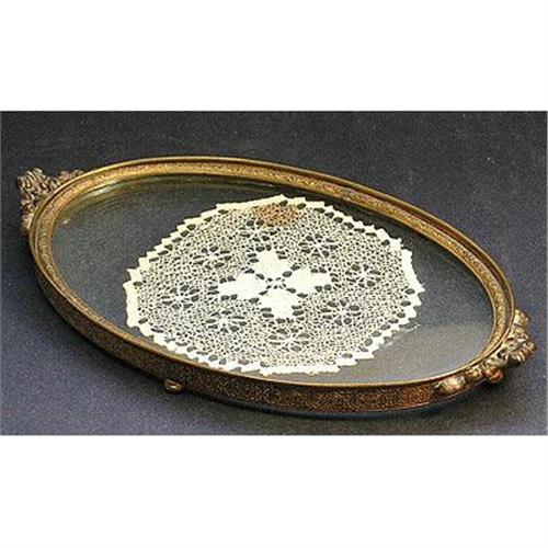 APOLLO Ornate Brass, Lace and Glass Oval Tray #2057676