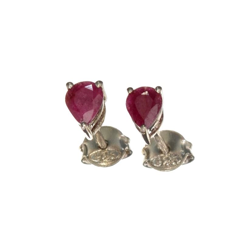 Fine Jewelry 0.90CT Pear Cut Ruby And Sterling Silver Earrings