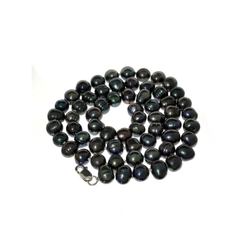 18'' Black Dyed Pearl Strand with Sterling Silver Clasp Necklace