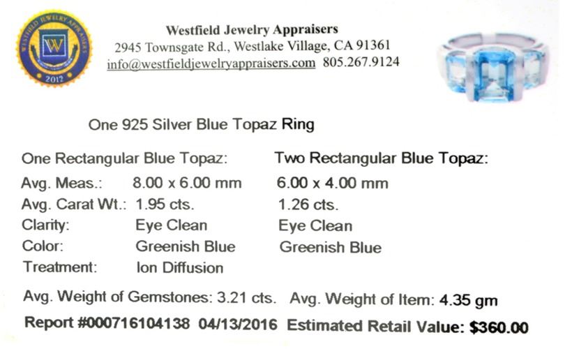 Fine Jewelry 3.21CT Rectangular Cut Blue Topaz And Sterling Silver Ring