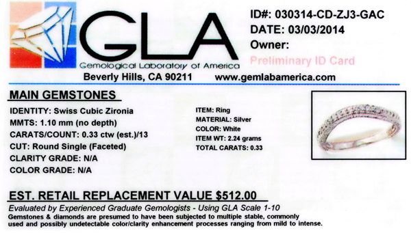 GovernmentAuction.com utilizes Retail Replacement Value Appraisals, which are the most common. These types of evaluations are written for insurance needs. This would be the cost to replace the jewelry, with an item of equal quality and kind, considered to be the current market price or the replacement value. This type of appraisal is done to protect you in the event of damage or loss of a valuable item. Our appraisals are conducted by and independent 3rd Party appraisal firm that utilizes Certified GIA Gemologist, if more information is needed you are welcome to contact them directly: Gemological Laboratory of America- info@gemlabamerica.com. Appraisals should be used for verification of gemstone and/or metal weight, size, and grade only, not actual value. Appraisal value should be considered for insurance purposes only, not actual value, as price varies greatly from retail locations through-out the world. Items should not be purchased with the expectation to resell for appraisal price or for profit.