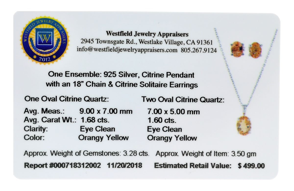 1.68CT Oval Cut Citrine Quartz Sterling Silver Pendant With 18'''' Chain And 1.60CT Oval Cut Citrine Quartz Solitaire Earrings