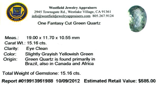 15.16CT Oval Cut Green Quartz Gemstone