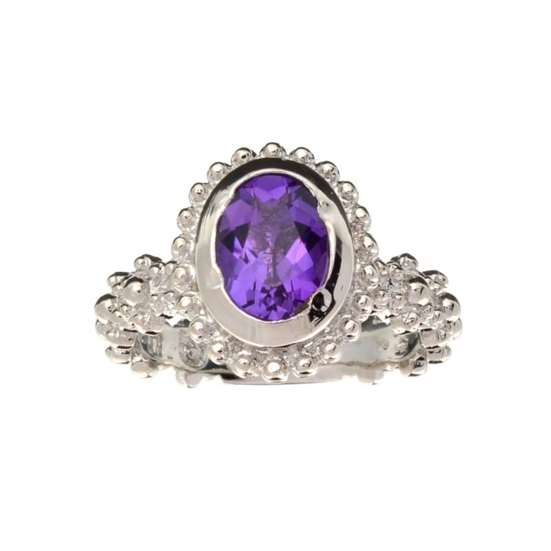 Fine Jewelry 1.10CT Oval Cut Amethyst Quartz And Platinum Over Sterling Silver Ring