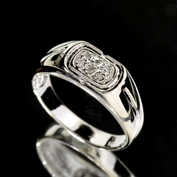 0.04CT Round Cut Diamond and Platinum Over Sterling Silver Rolex Style Ring