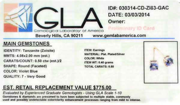 0.50CT Round Cut Tanzanite And Platinum Over Sterling Silver Earrings