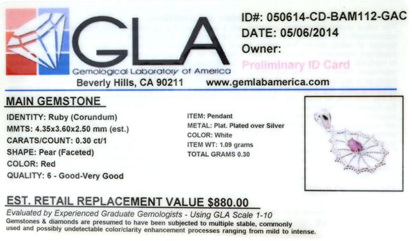 0.30CT Pear Cut Ruby And Platinum Over Sterling Silver Pendant