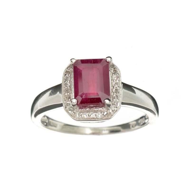 Fine Jewelry 1.98CT Red Ruby And White Sapphire Sterling Silver Ring