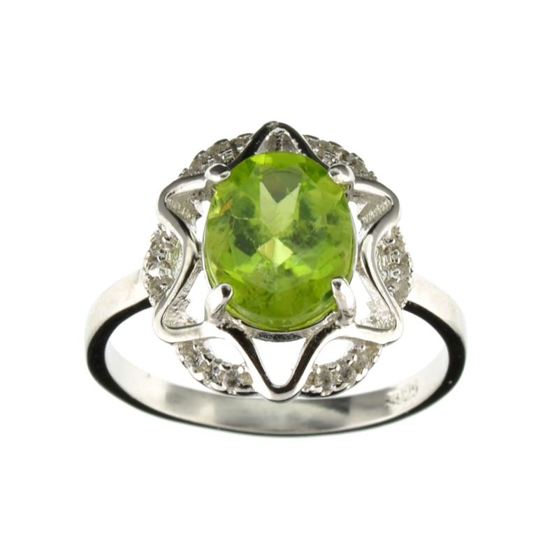 Fine Jewelry 2.28CT Green Peridot And Colorless Topaz Platinum Over Sterling Silver Ring