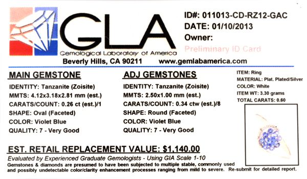 0.60CT Tanzanite and Platinum Over Sterling Silver Ring