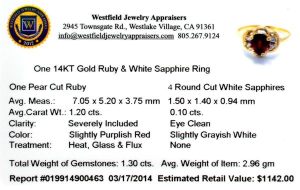 APP: 1.1k 14 kt. Gold, 1.30CT Ruby And White Sapphire Ring
