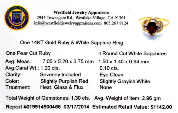 14 kt. Gold, 1.30CT Ruby And White Sapphire Ring