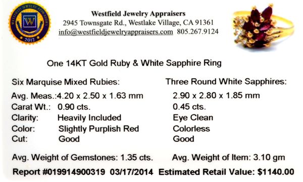 14 kt. Gold, 1.35CT Ruby And White Sapphire Ring