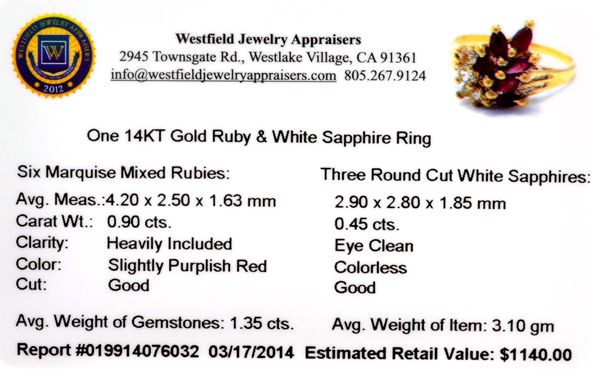 14 kt. Gold, 1.35CT Ruby And White Sapphire Ring
