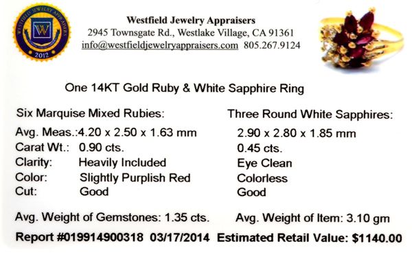 14 kt. Gold, 1.35CT Ruby And White Sapphire Ring