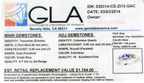0.60CT Tanzanite And Quartz Platinum Over Sterling Silver Ring