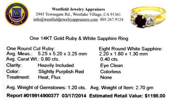APP: 1.2k 14 kt. Gold, 1.20CT Ruby And White Sapphire Ring